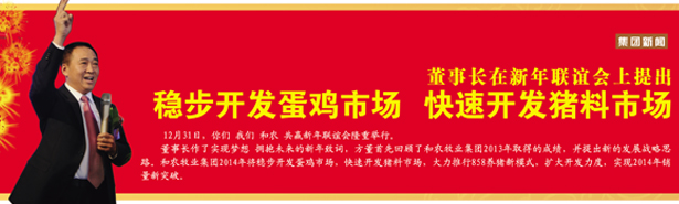 董事長作了實現(xiàn)夢想 擁抱未來的新年致詞,方董首先回顧了和農(nóng)牧業(yè)集團2013年取得的成績,并提出新的發(fā)展戰(zhàn)略思路。和農(nóng)牧業(yè)集團2014年將穩(wěn)步開發(fā)蛋雞市場,快速開發(fā)豬料市場,大力推行858養(yǎng)豬新模式,擴大開發(fā)力度,實現(xiàn)2014年銷量新突破。